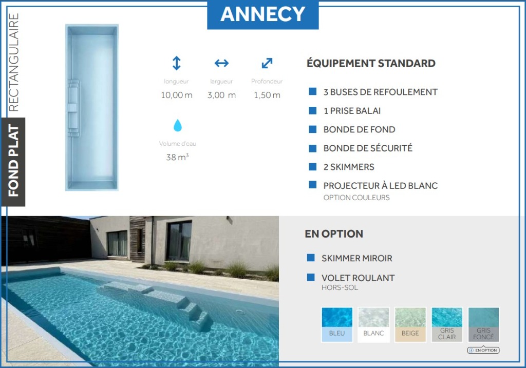 Découvrez le modèle Annecy, une piscine aux lignes épurées et au design intemporel, conçue pour sublimer votre extérieur.