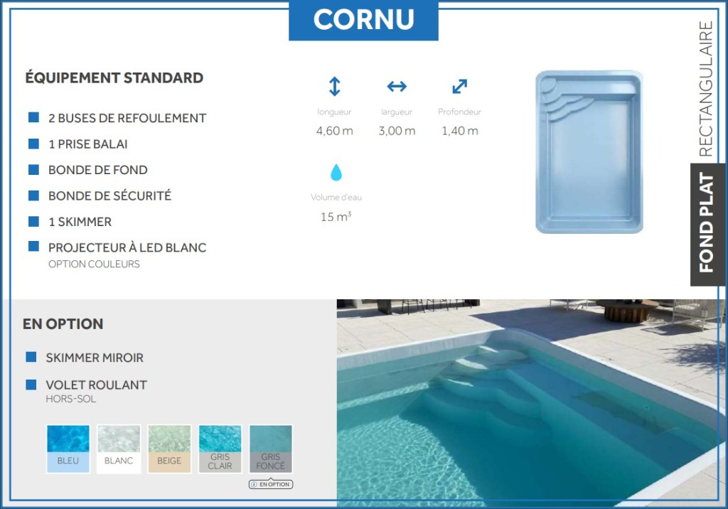Découvrez le modèle Cornu, une piscine aux lignes épurées et au design intemporel, conçue pour sublimer votre extérieur.