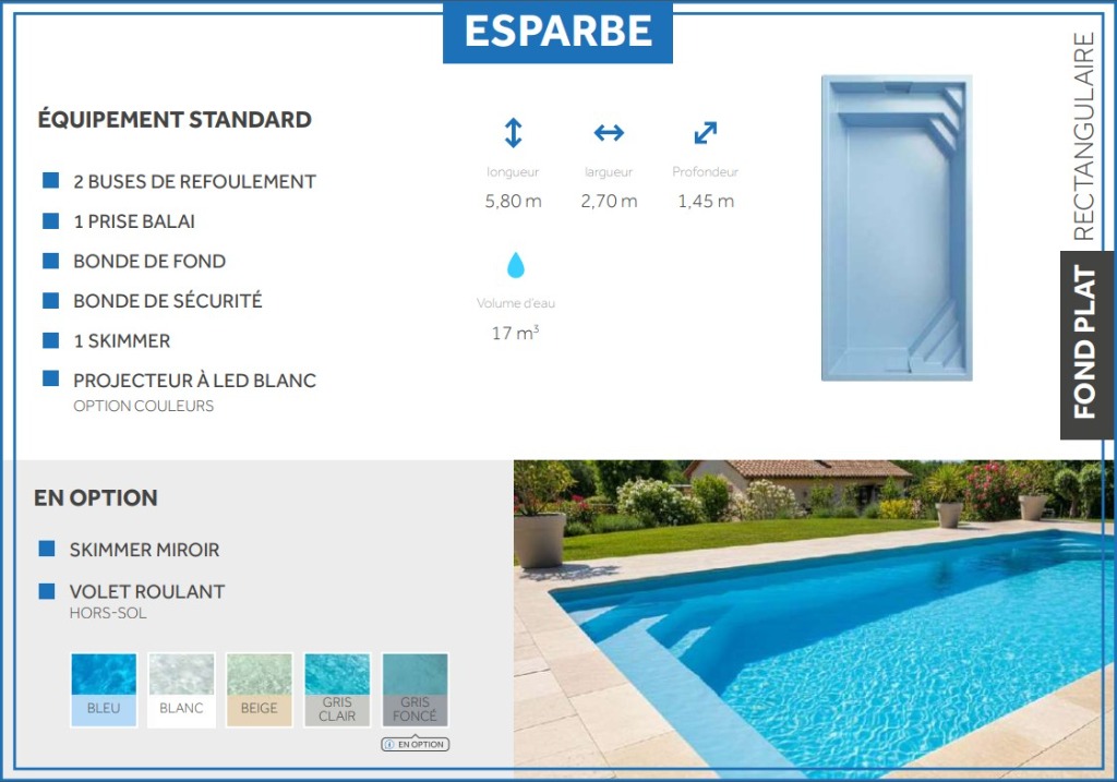 Découvrez le modèle Esparbe, une piscine aux lignes épurées et au design intemporel, conçue pour sublimer votre extérieur.