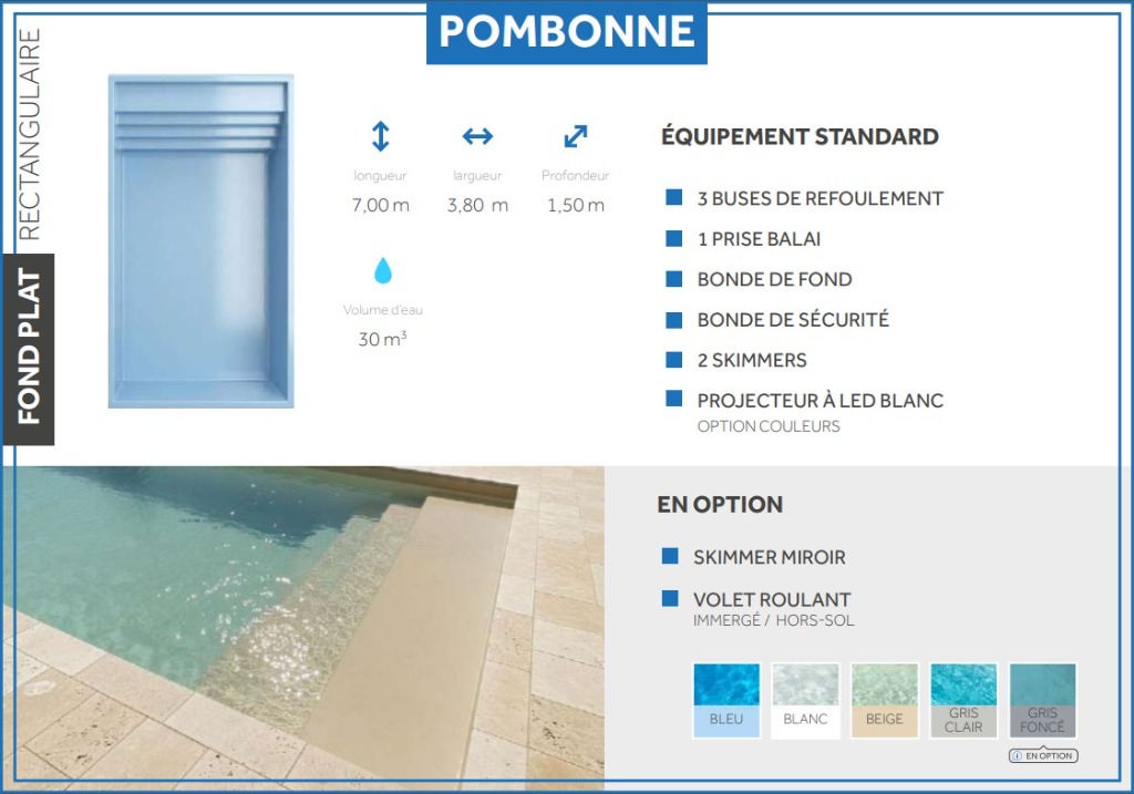 La simplicité au service de l'élégance. Le modèle Pombonne offre une surface de nage maximisée avec ses lignes tendues et son design intemporel.