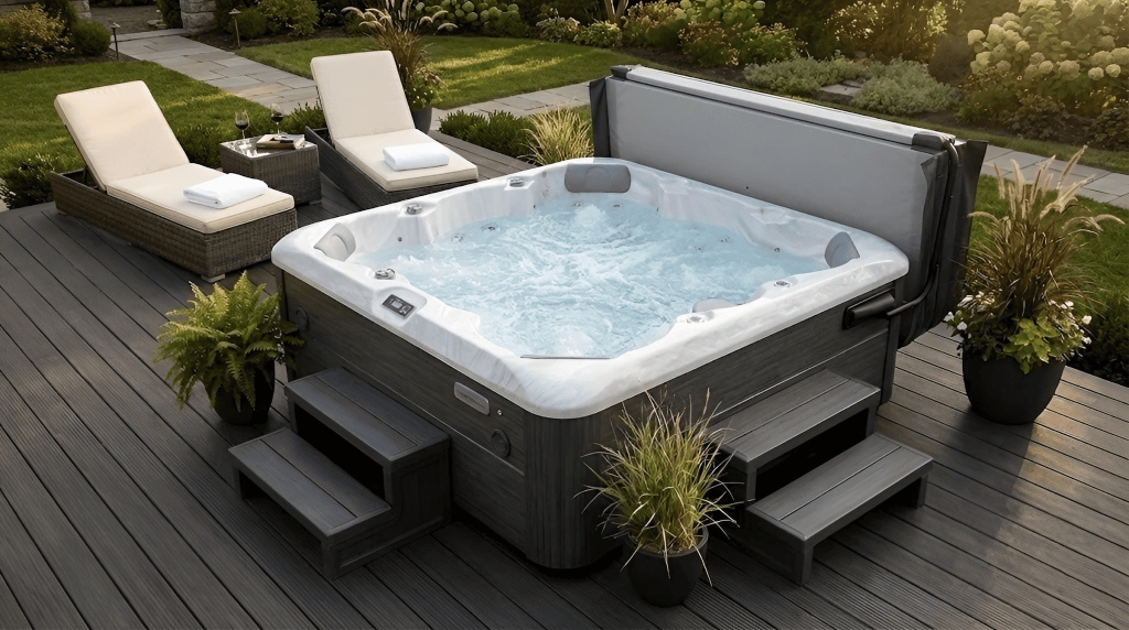 Le modèle SAMOA incarne l’alliance parfaite entre convivialité et performance thérapeutique. Compact mais spacieux, il offre une expérience d’hydromassage complète pour toute la famille.