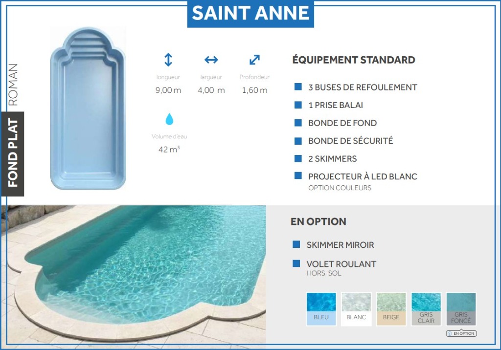 Découvrez le modèle Ste Anne, une piscine aux lignes épurées et au design intemporel, conçue pour sublimer votre extérieur.