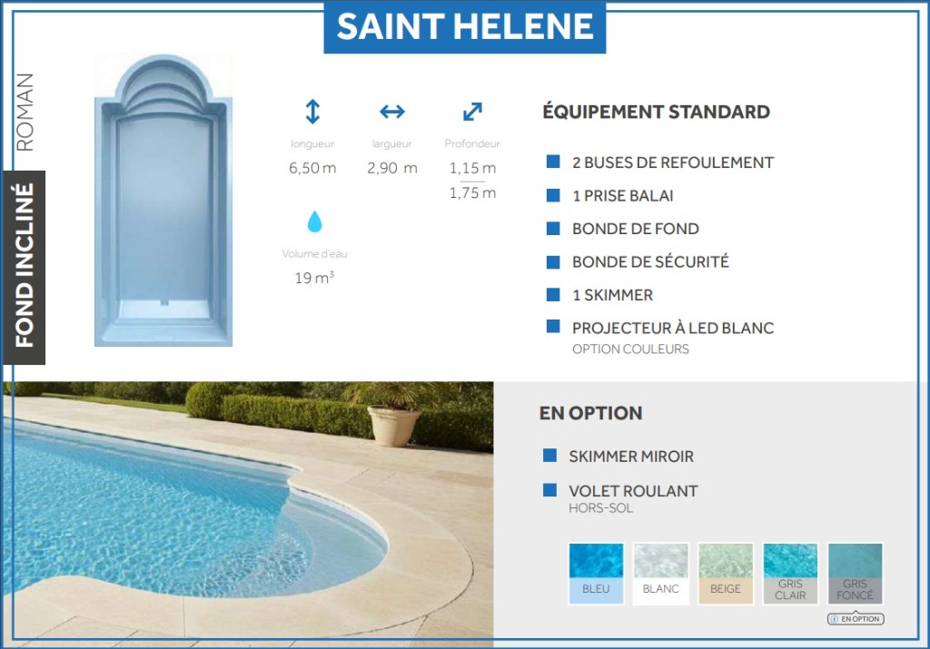 Découvrez le modèle Ste Hélène, une piscine aux lignes épurées et au design intemporel, conçue pour sublimer votre extérieur.